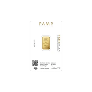 سبيكة ذهبية صغيرة بحجمها، كبيرة بقيمتها، بوزن 5 جرام من تصميم فورتونا – رمز الحظ والرخاء – ومن إنتاج دار الذهب السويسرية المرموقة PAMP Suisse. ??